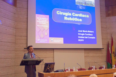 A continuación, se dió paso a una mesa redonda que fue moderada por la Dir.ª de la UGCI de Hematología y Hemoterapia de los H.R.U. y H.U.V.V., Dra. Ana Isabel Heiniger, y donde intervinieron: el Dr. José María Melero Tejedor, Jefe del Servicio de Cirugía Cardíaca del HUVV, con la ponencia «Cirugía Cardíaca Robótica» que dejó atónitos a todos los presentes mostrando de primera mano los avances de esta tecnología con un vídeo de una de sus cirugías; el Dr. Juan José Gómez Doblas, Jefe de Sección de Cardiología del HUVV y Presidente de la Sociedad Andaluza de Cardiología, con su ponencia «Prevención de la obesidad en la infancia…¿por qué es importante?», donde dejó mostró unas llamativas estadísticas sobre la incidencia de la obesidad infantil en nuestro país, y dejando de manifiesto su relación con el desarrollo de enfermedades cardiovasculares; la Dra. Mª Victoria Hidalgo San Juán, Directora UGC de Neumología del HUVV, con una ponencia sobre el «Tromboembolismo Pulmonar» y todo lo que conlleva esta patología, su relación con el cáncer (conocida como CAT), así como dejando de manifiesto los beneficios que supondría que todos los pacientes con trombos pudieran acceder a los nuevos anticoagulantes, evitando entre otras cosas muchas de las hemorragias; D. Adolfo Romero, Enfermero de la Consulta de Anticoagulación Oral del HUVV y Doctor por la UMA, con la ponencia «Educación sanitaria y Paciente Anticoagulado. Mucho más que un tríptico», que transmitió los diferentes tipos de anticoagulantes, y la importancia de la educación a los pacientes que reciben estos tratamientos, dejando de manifiesto los beneficios del autocontrol.