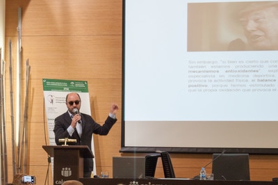 – “Tú en tus manos; Ejercicio y Vida Saludable”, por el Dr. Carlos de Teresa Galván, Médico Especialista en Medicina del Deporte y Director del Instituto de Ejercicio Saludable, que quiso abordar los beneficios cardiovasculares del ejercicio físico de una forma divertida y amena como nos tiene acostumbrados, haciendo incidencia en que el deporte tiene un efecto protector frente a la hipertensión que puede originar un accidente cerebrovascular, con media hora al día de actividad moderada podemos reducir la agregación plaquetaria, lo que conlleva a un menor riesgo de trombosis y en definitiva de sufrir un ictus.